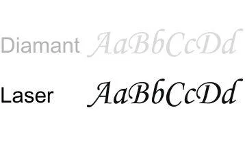 Unser Schmuck wird in unserer eigenen Werkstatt an der Côte d'Azur verpackt und graviert. Die Schriftfarbe bei einer Diamantgravur ist dezent und eher weißlich gefärbt. Eine Lasergravur ist wesentlich sichtbarer und dunkler. Die Wahl der Gravurart ist daher eine Frage des persönlichen Geschmacks.