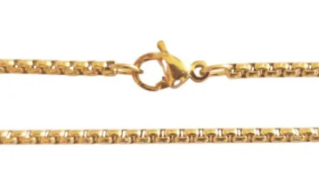 Coole Halskette mit einem Dog-Tag Anhänger aus Edelstahl mit hochglanzpolierter Oberfläche, in der Farbe Gold. Passend zu diesem originellen Anhänger gibt es optional eine Kugelkette in den Kettenlängen 50cm, 60cm und 70cm. Die Halskette mit dem Dog-Tag Anhänger kann auf der Vorder- und Rückseite graviert werden. Es besteht die Möglichkeit, den Anhänger horizontal oder vertikal zu gravieren, wodurch er sehr viel Platz für besonders lange Gravuren bietet. Dieser Dog Tag Anhänger ist eine geschmackvolle Geschenkidee für jeden Mann. Der Anhänger ist 37,6 mm hoch und 21,9 mm breit.